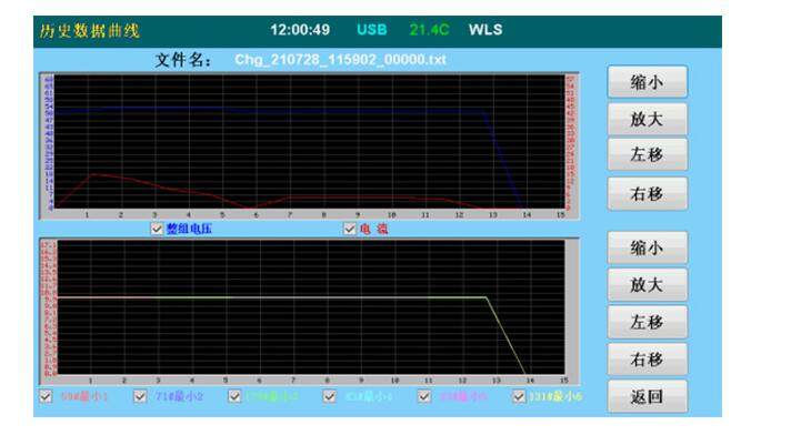 ? ● 具備曲線查看功能:通過數據管理界面的歷史數據曲線功能,可將內置的數據文件以圖表和波形圖的形式進行回看查詢。