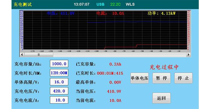? ● 充電可設定多個終止條件:充電容量到、充電時間到、單體電壓高限、整組電壓高限、其中任意一個測試條件達到后會自動停止充電,以及過電壓、過電流、過溫、數據存儲異常、電壓測試端子反接等多種測試故障報警顯示。