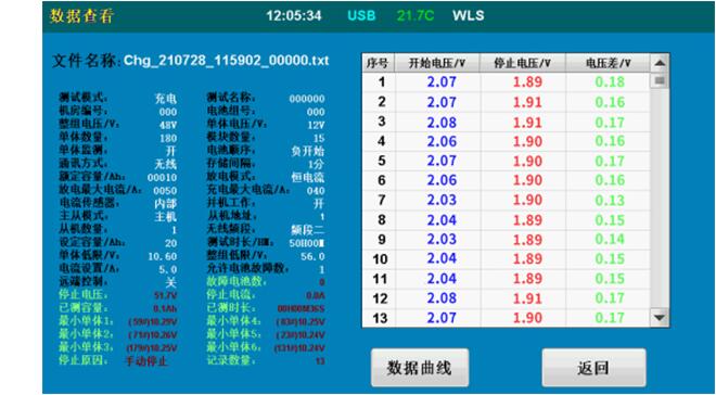? ● 配備專業的分析軟件:能同時顯示電壓、電流曲線、單體電池柱狀圖數據表格等,可自動生成EXCEL/WORD文檔格式、并可打印、生成測試數據報告。