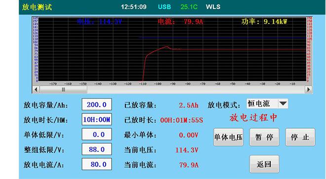 ? ● 放電可設定多個終止條件:放電容量到、放電時長到、單體電壓閾值 ,整組電壓閾值,其中任意一個測試條件達到后會自動停止放電,以及過電壓、過電流、過溫、數據存儲異常、電壓測試端子反接等多種測試故障報警顯示。